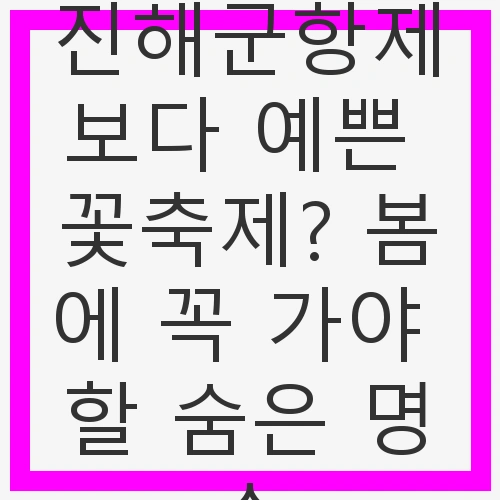 봄이 오면 언제나 기대되는 순간들이 있습니다. 그 중 하나가 바로 벚꽃이 만개하는 시기입니다. 특히 진해군항제는 전국적으로 유명한 꽃축제 중 하나로 많은 이들이 찾아오는 장소입니다. 그러나 여러분, 진해군항제보다 더 아름다운 꽃축제를 경험할 수 있는 숨은 명소가 있다는 사실, 알고 계셨나요? 이번 포스팅에서는 '진해군항제보다 예쁜 꽃축제? 봄에 꼭 가야 할 숨은 명소'를 소개해 드리겠습니다. 이곳들을 통해 여러분의 봄날에 특별한 기억을 더해보세요.